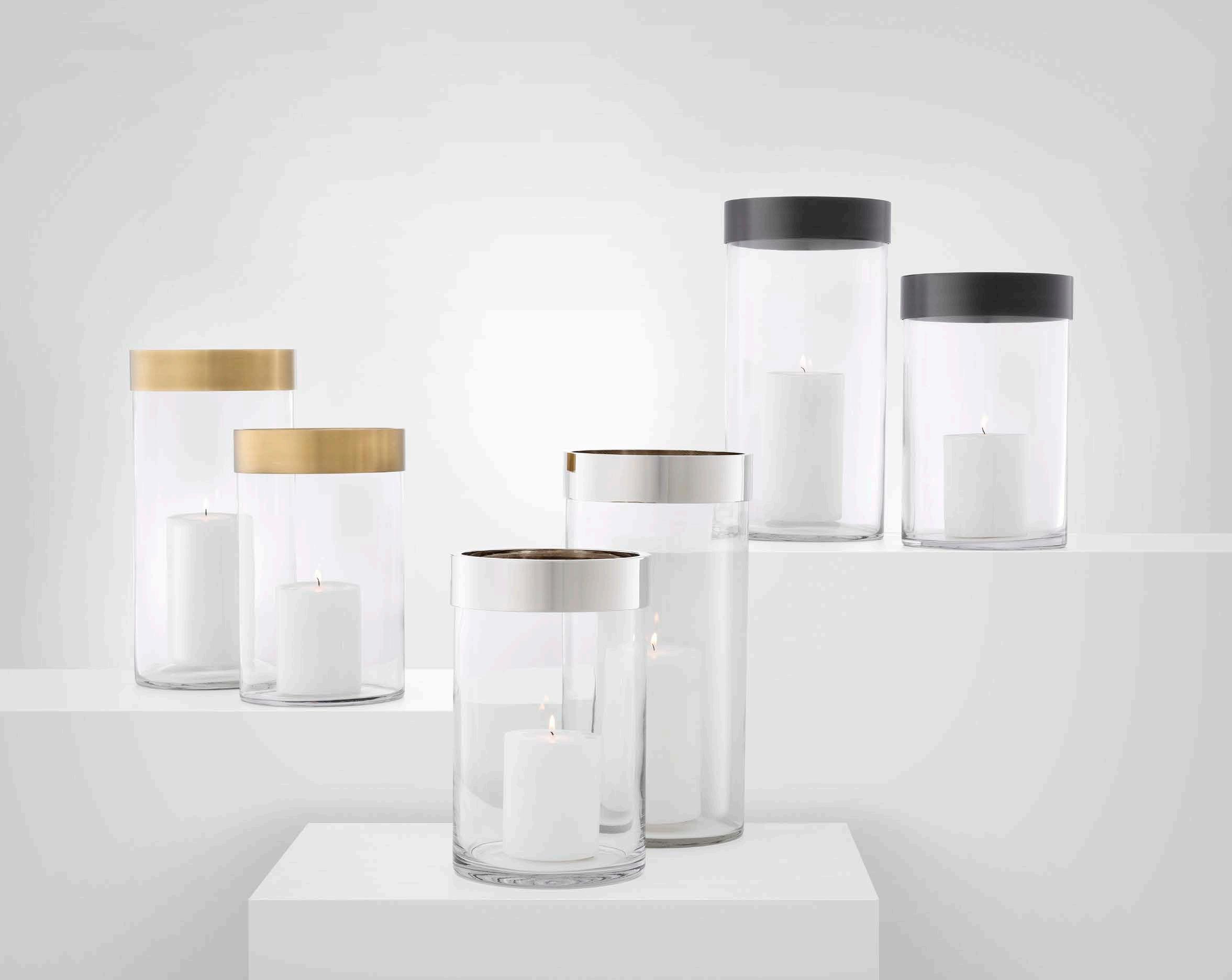 The Vertex Hurricanes bring elegant charm to your décor, whether used as single showpieces or as stylish additions to a romantic ensemble. Each cylindrical clear glass tealight holder features a sleek and chic metal rim.