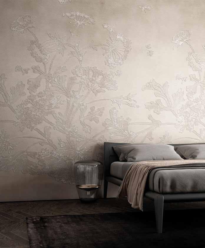The colour palette of the Glamora coverings has a clear preference for neutral shades. It is based on a style resulting from careful research, in which shapes and textures are recontextualised in a modern perspective.