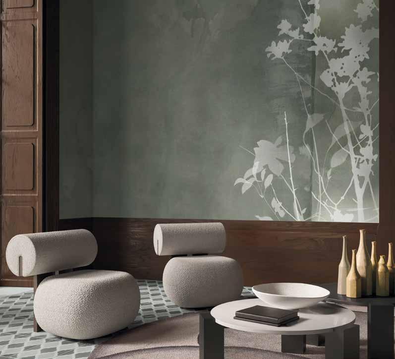 Sono spazi immensi o remote oasi di pace, spesso punteggiati da canali d’acqua, fontane, rocce e laghetti; gioielli che regalano felicità e benessere a patto di immergervisi anima e corpo, respirandone ogni profumo e assorbendone ogni vibrazione. I soggetti di questo tema di collezione nascono con l’intento di portare negli interni le fragranze e le sfumature di mondi profondamente reali, che però hanno la dimensione di un sogno. Autentiche porzioni di paesaggio in cui un linguaggio decorativo poetico ed emozionale, fatto di tratti decisi e colori sapientemente calibrati, restituisce un’esperienza densa di suggestioni.