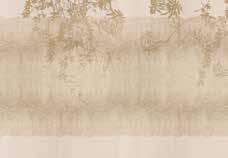 The collection presents 14 designs that infuse interiors with a reassuring graciousness, with images of flowers, branches and foliage that are often crafted onto splitlevel layers to create an original sense of visual depth. wall paintings’ that have a subtle expressive power, the beauty of bas relief sculpture and the gleaming tones of Middle-eastern art, muchloved during the Art Deco period. The colour palette of the wallcoverings explores a range of neutral hues that gradually deepen as they move from white and nudes to grey, blush pink and clay through to gold and precious metals. The base of each design features different shades of the same colour with layers of contrasting shades in varying tones, at times personalised with light weaves of foliage that bring to mind delicate lace and silk fabrics. These provide the base for a natural element that always stands right in the foreground as star of the show, grabbing our attention with its material presence and a sense of gentle, barely perceptible movement.