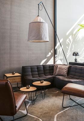Al entrar, nos encontramos inmersos en exuberantes jardines tropicales, poblados de palmeras que ofrecen un oasis en medio de un paisaje de dunas que se extiende hasta el mar. Las habitaciones que se asoman a él, desde las zonas lounge hasta las suites, se hacen eco hábilmente de sus ritmos y colores. El diseño de interiores combina materiales nobles como diferentes tipos de madera, mármol y cerámica con revestimientos de última generación. Las propuestas de Glamora, escogidas de la Creative Collection, ofrecen una connotación incisiva a los ambientes más significativos. En el espec-