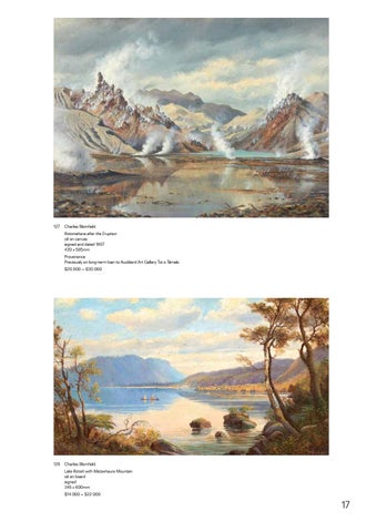Charles Blomfield Rotomahana after the Eruption oil on canvas signed and dated 1887 430 x 585mm Provenance Previously on long-term loan to Auckland Art Gallery Toi o Tāmaki. $20 000 – $30 000