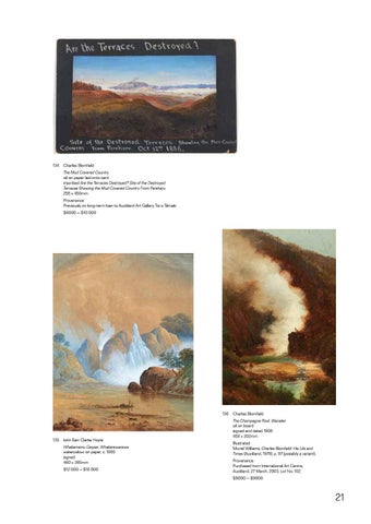 The Champagne Pool, Wairakei oil on board signed and dated 1908 458 x 302mm Illustrated Muriel Williams, Charles Blomfield: His Life and Times (Auckland, 1979), p. 97 (possibly a variant). Provenance Purchased from International Art Centre, Auckland, 27 March, 2003, Lot No. 102. $6000 – $9000