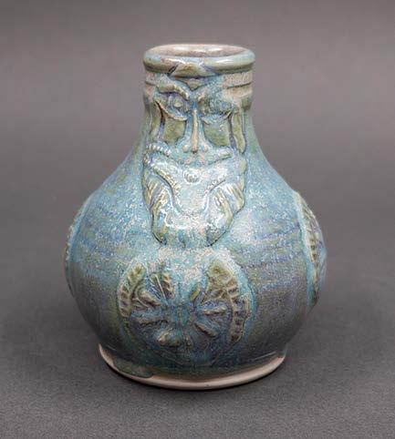 Large slab vase stoneware with applied relief decoration paper label affixed verso reading: ‘Barbara Robertson Waihi’ H. 355mm