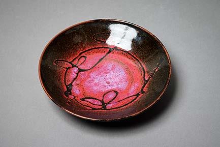 decorated with a tenmoku ‘flower of life’ wax resist design over dark olive glaze