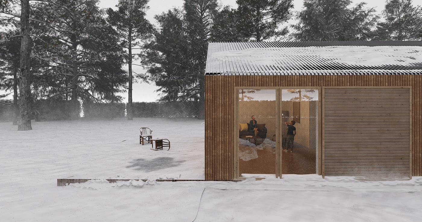 This house, designed in 2021 for a Swedish couple, is located among the woods and has plenty of natural light streaming through its large windows to create a strong connection with nature. It is a minimalist design.