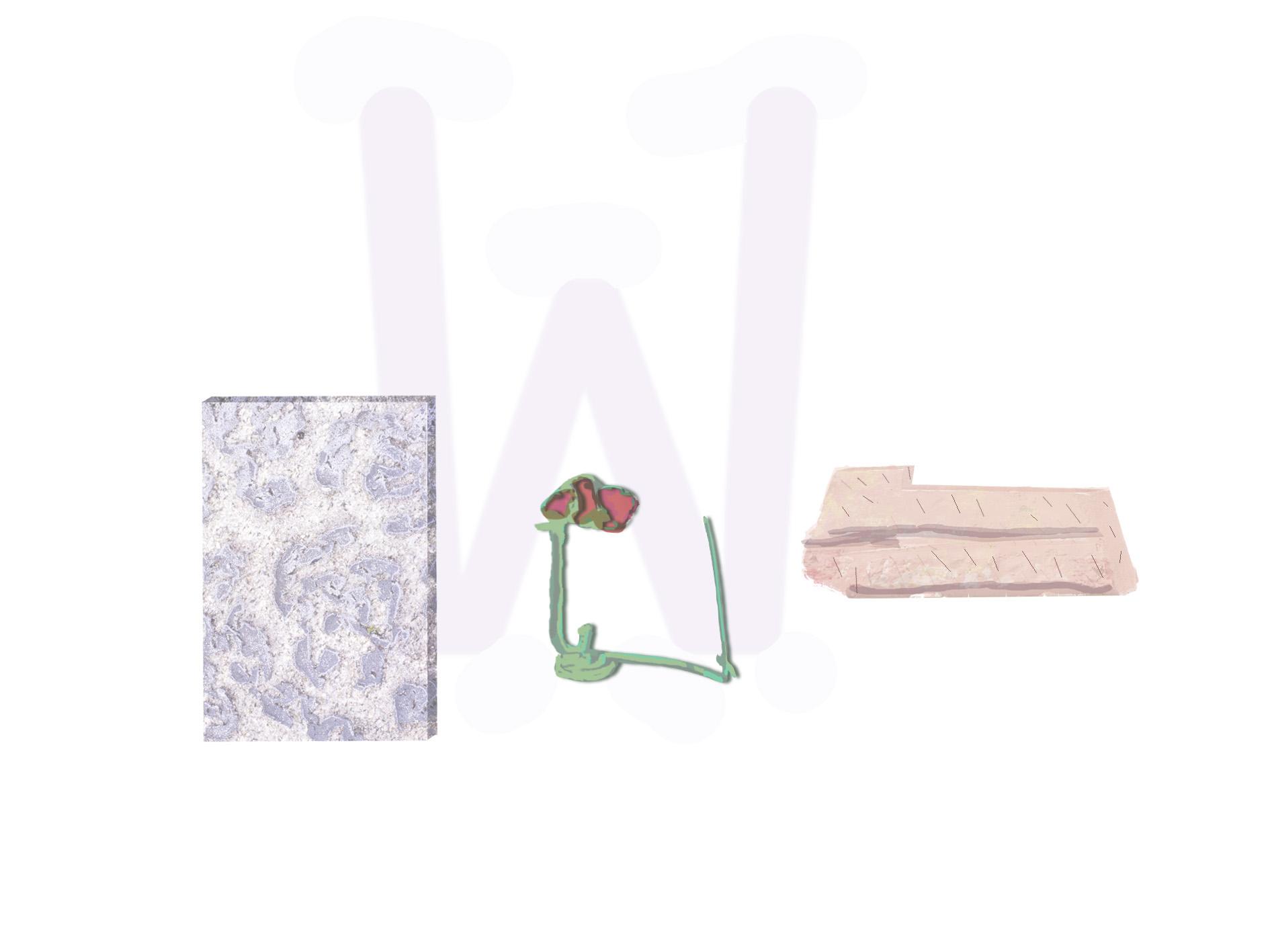 Forud havde jeg lavet en række tryk i størrelsen 16 X 12 cm, hvert tryk indeholder et bogstav fra alfabetet og er udført i douce farver, der kan give mindelser om akvarel.