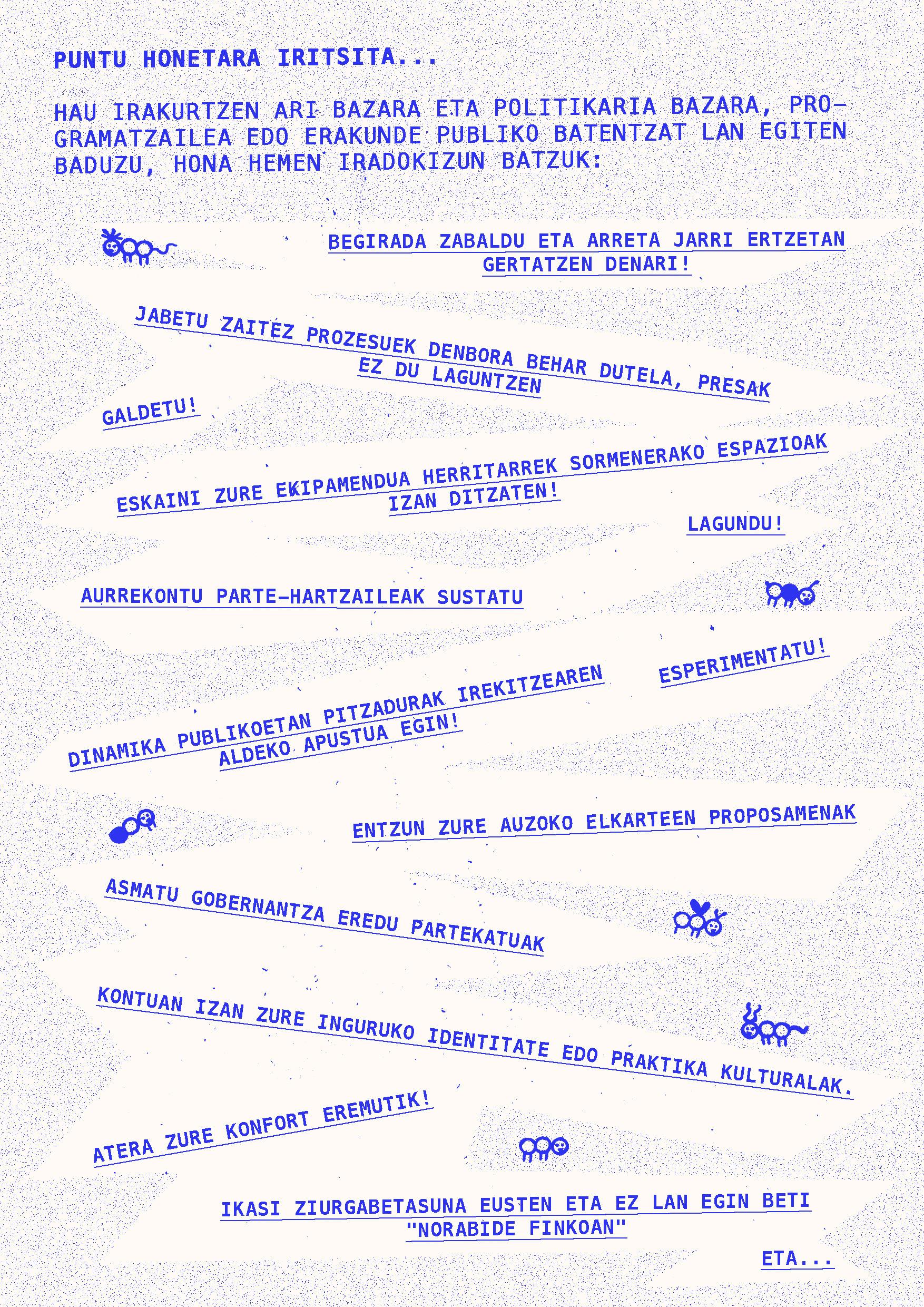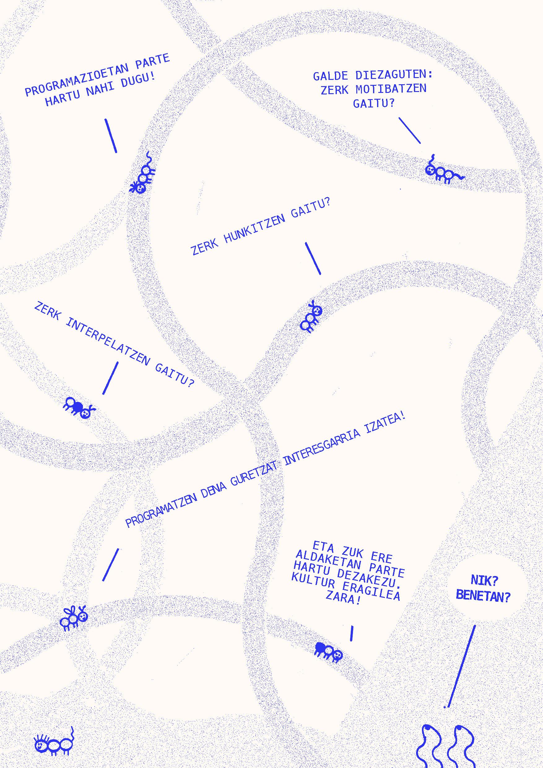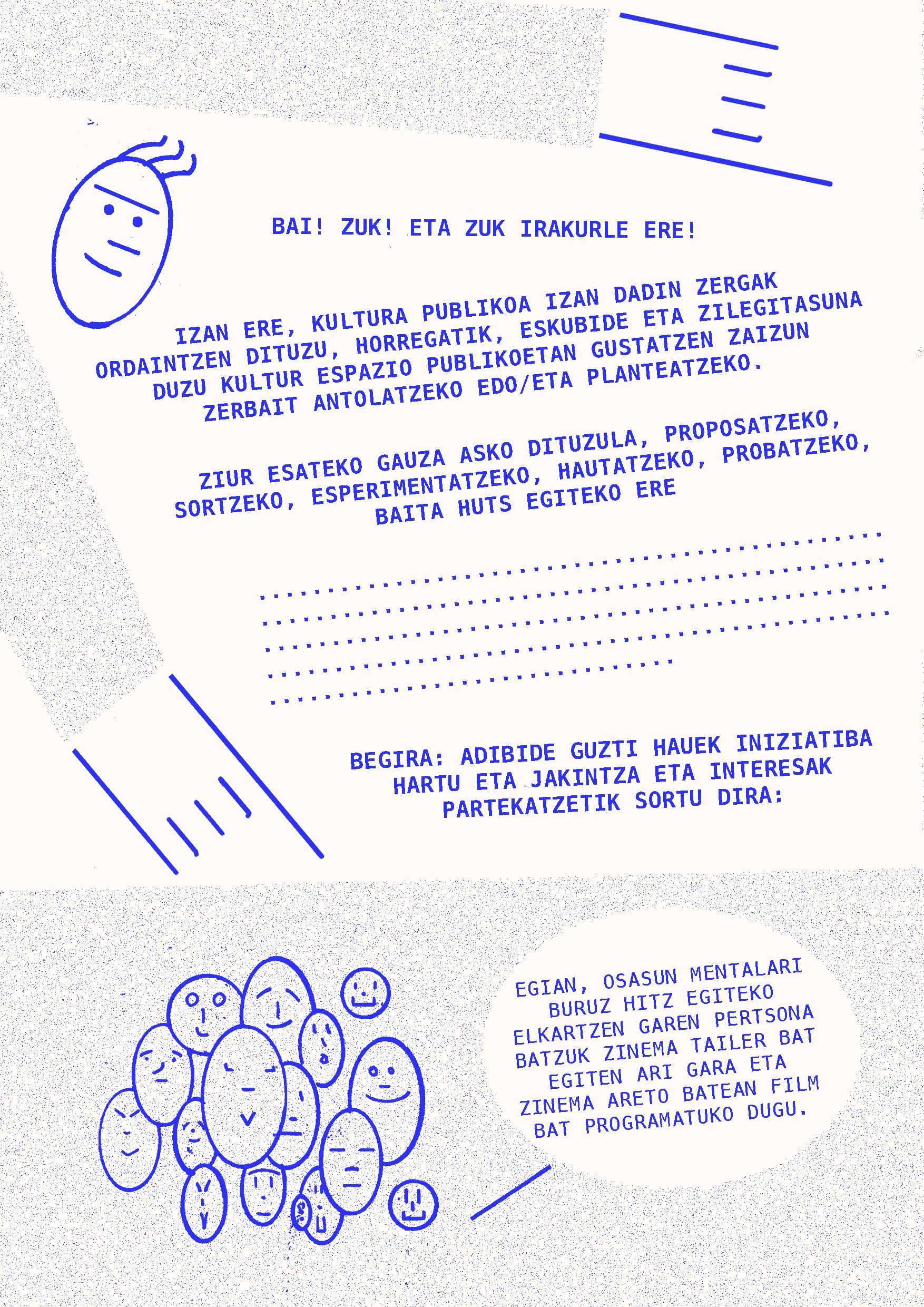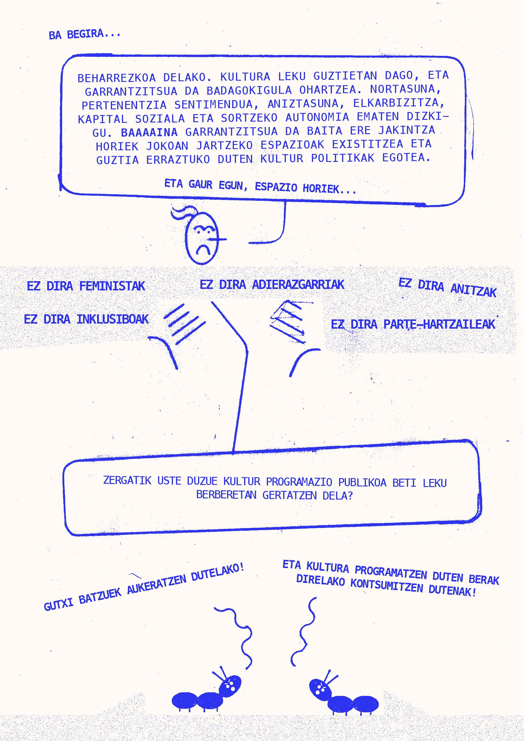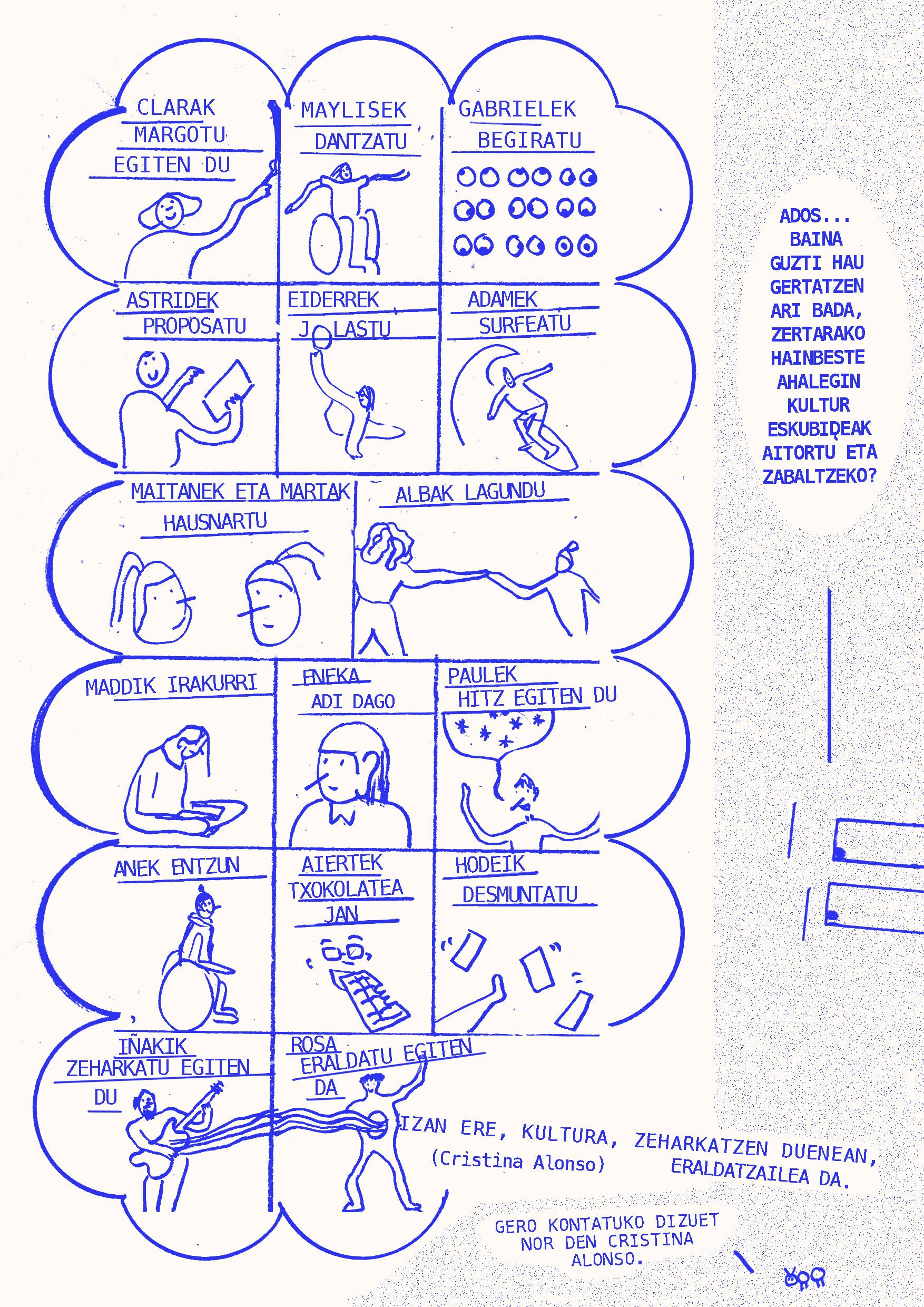 2024ko martxoaren 20an Intxaurrondo Kultur Etxean antolatuta genuen Eskubide kulturalak. Begirada aldaketa jardunaldian landutako edukiarekin osatu da fanzinea. Nola egin kultura guztiontzako irisgarriagoa izan dadin? galderaren inguruan hausnartzen ibili ginen Daniel Granados, Cristina Alonso eta Iker Atxa hizlariekin zein parte hartu zuten bestelako ahotsekin batera.