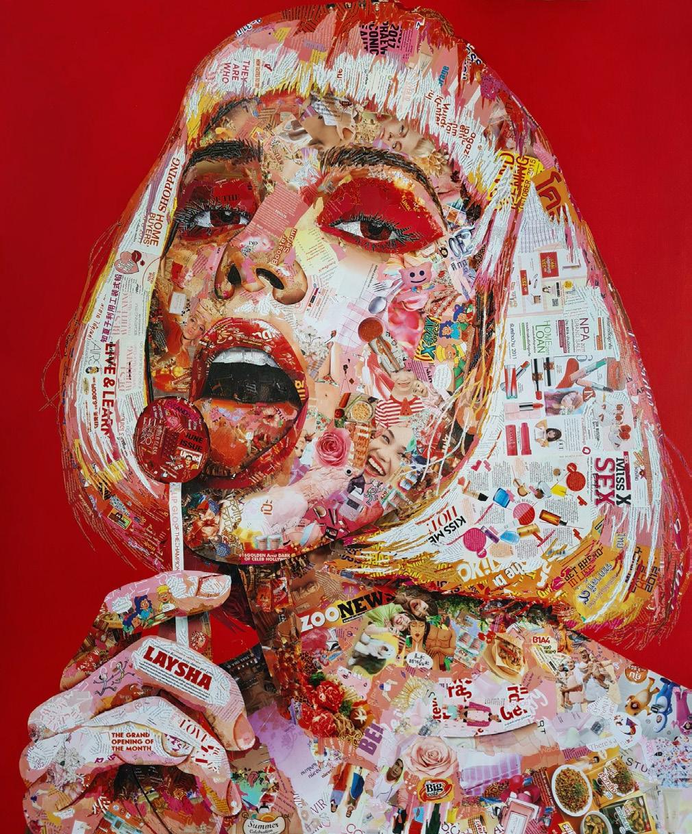 “I am very attentive to faces in my everyday life. In my collages, most of the time I represent the face of a women I have seen in the news. Often, I use the very publication in which I saw the face to create my collage. It’s as if, in a way, the destiny of that object, that assembly of paper, was only to bring to me the face I wish to immortalise.”