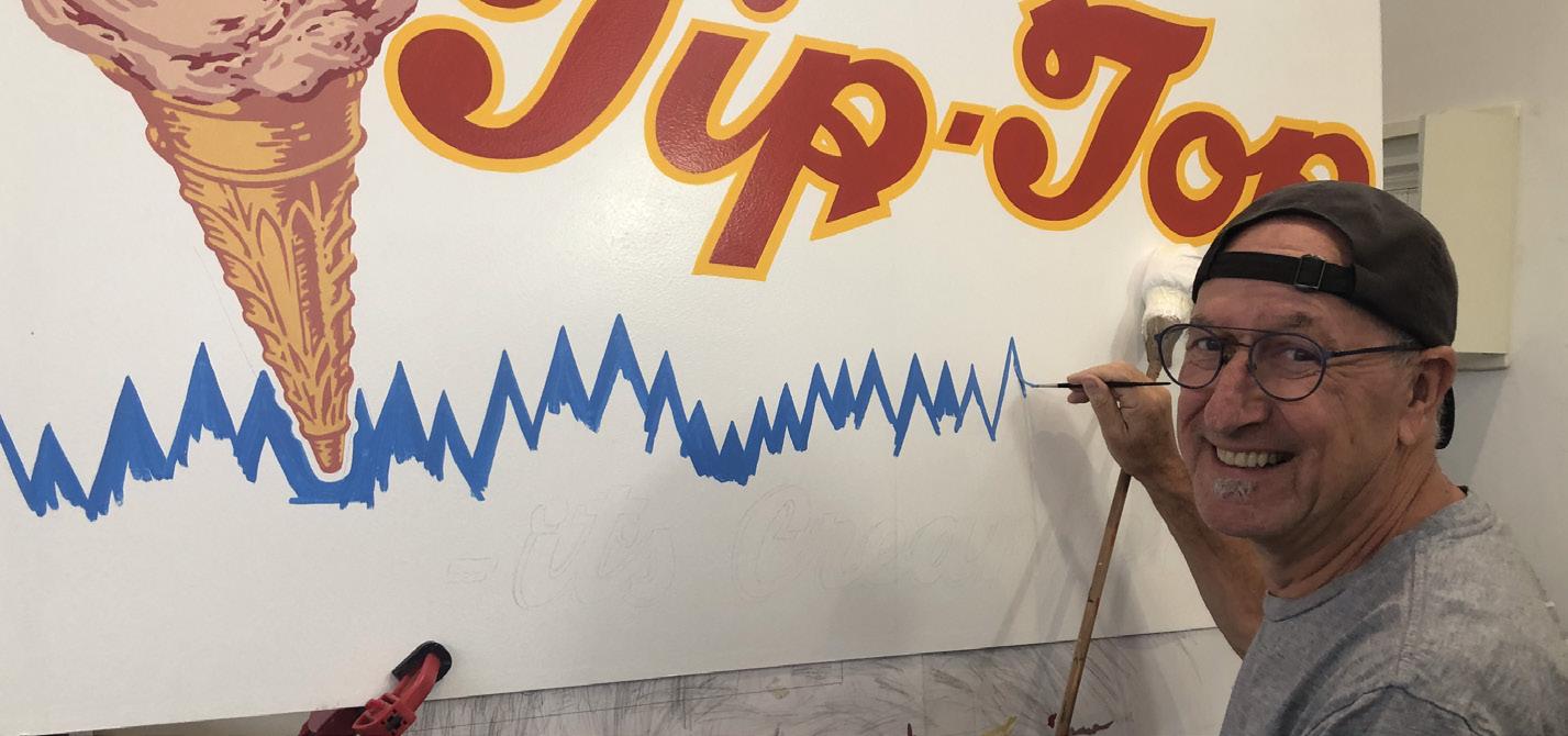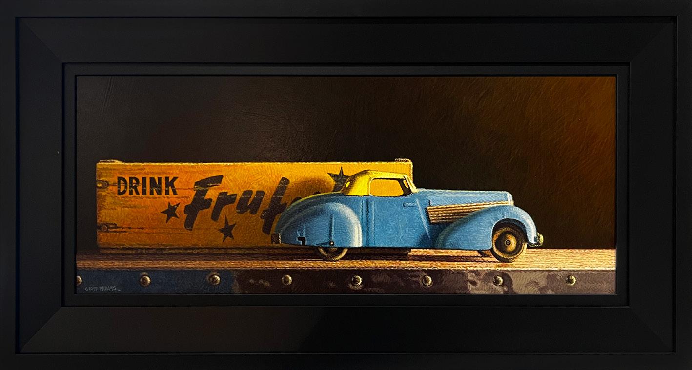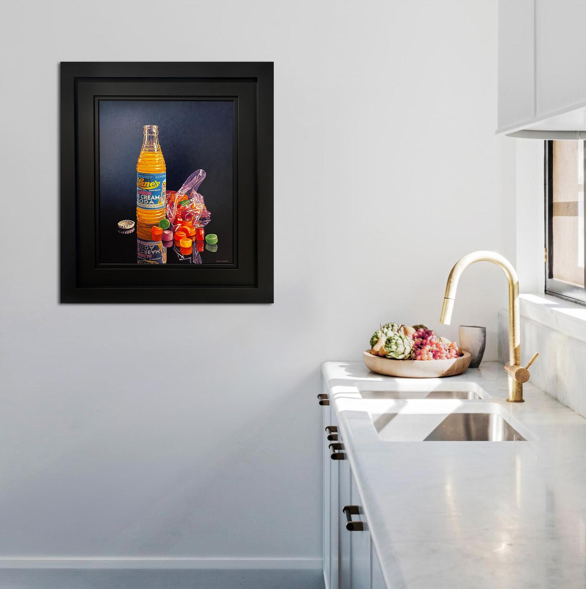Growing up from an early age in the family sign making business was the ultimate privilege, surrounded by signs, paint and master sign writers. Though never formerly trained as a sign writer my forte was discovered very early on, working after school producing the majority of our business’s pictorials, many award winners. These days my still life works are very much drawn from this era, utilizing much of the imagery I worked with, Coca Cola, Lanes Thompson etc. We literally screen-printed thousands of Coke posters through the eighties and produced numerous pictorials!
