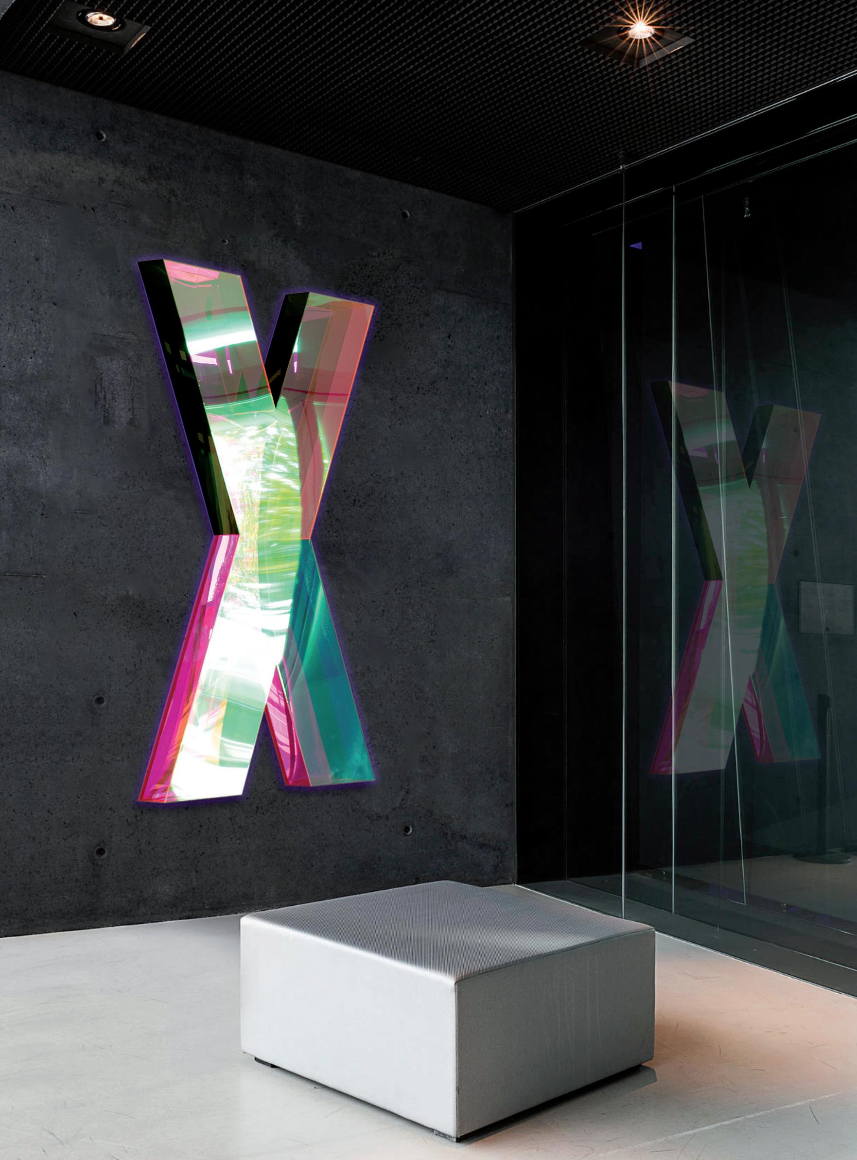 ‘I use ’X’ as a signature to authenticate the idea that the thoughts and actions of women are to be treasured. Colour is the vehicle I use as an emotive language and in combination with light the illuminations reflect a heightened intensity much like looking into a kaleidoscope.’ – Wendy Hannah