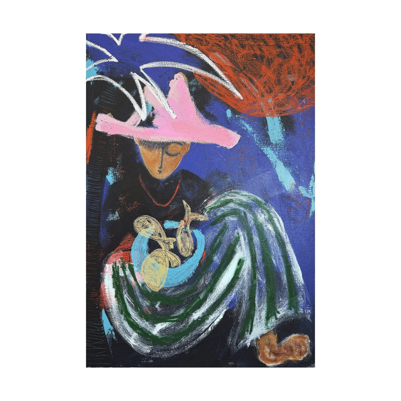 mixed media on canvas framed in oak (framed)