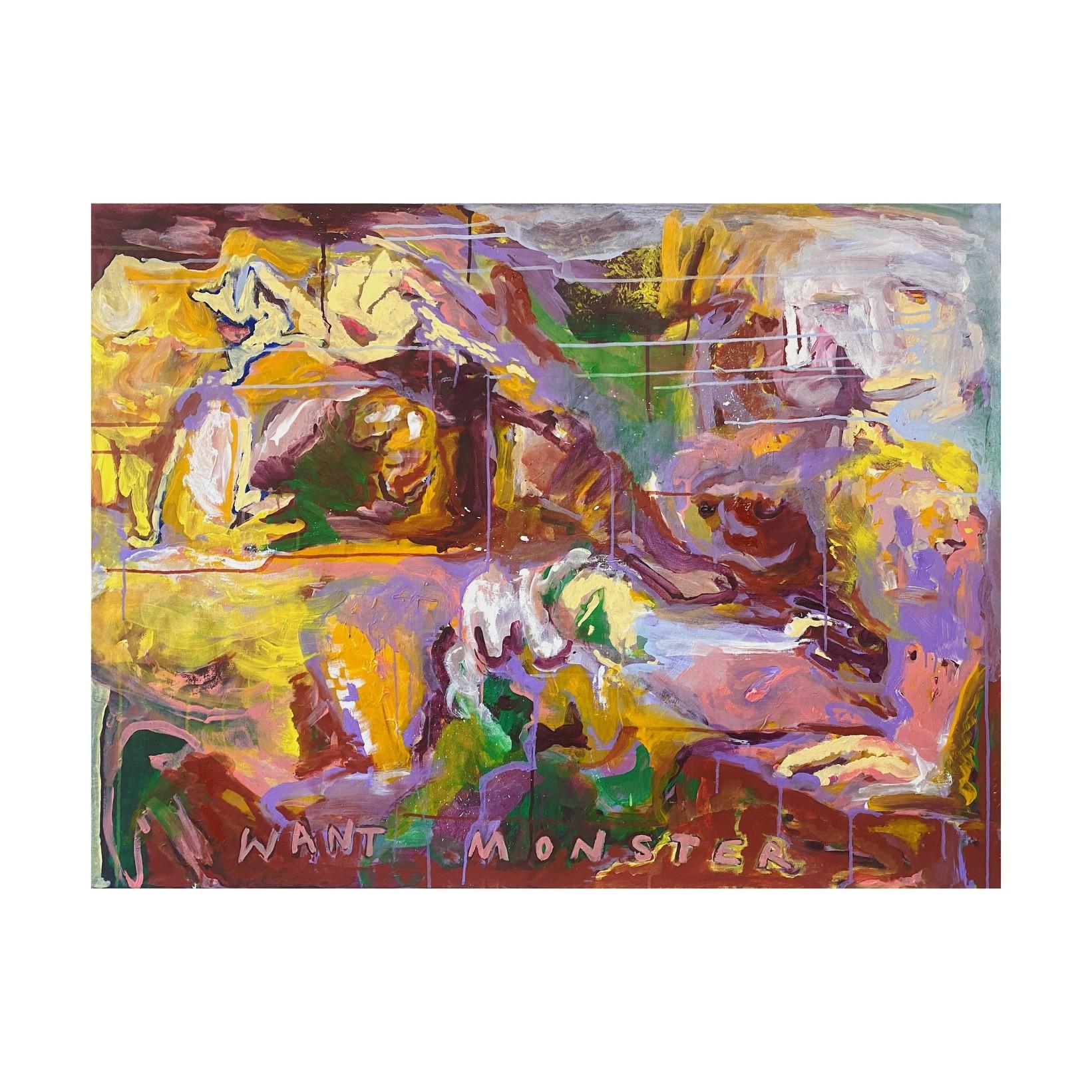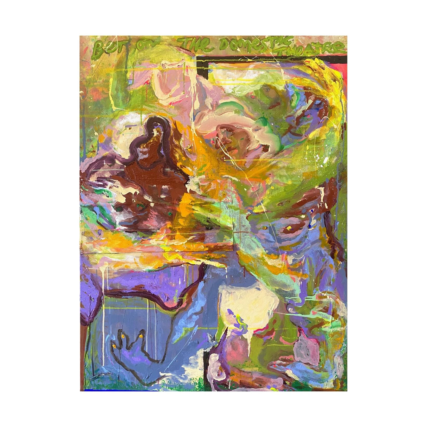 Harry Bayston gobble gobble, you must know, you want it all and need to show, 2024 acrylic mediums, gouache and oil pastel on linen bedsheet (stretched)