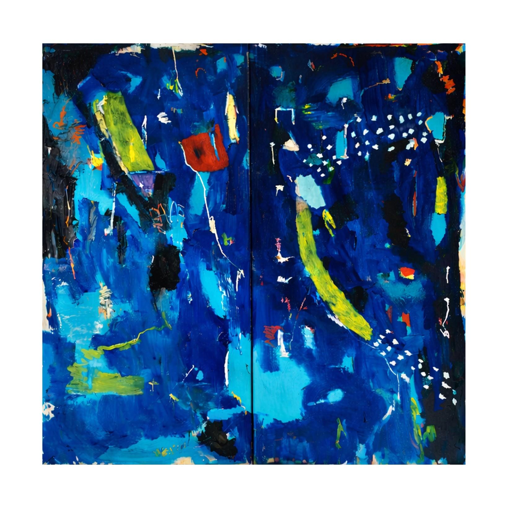cyanotype inks and oil paint on wood panel