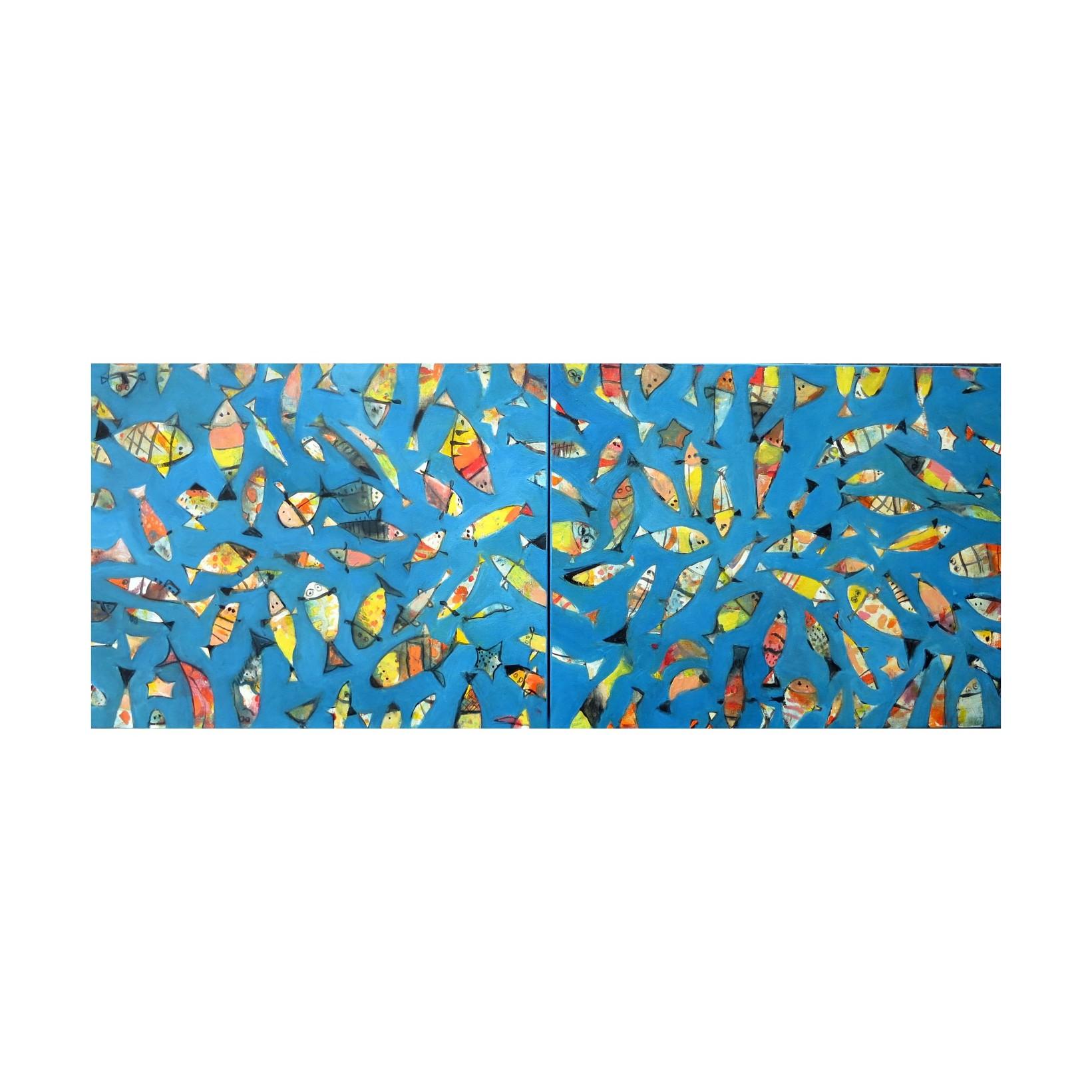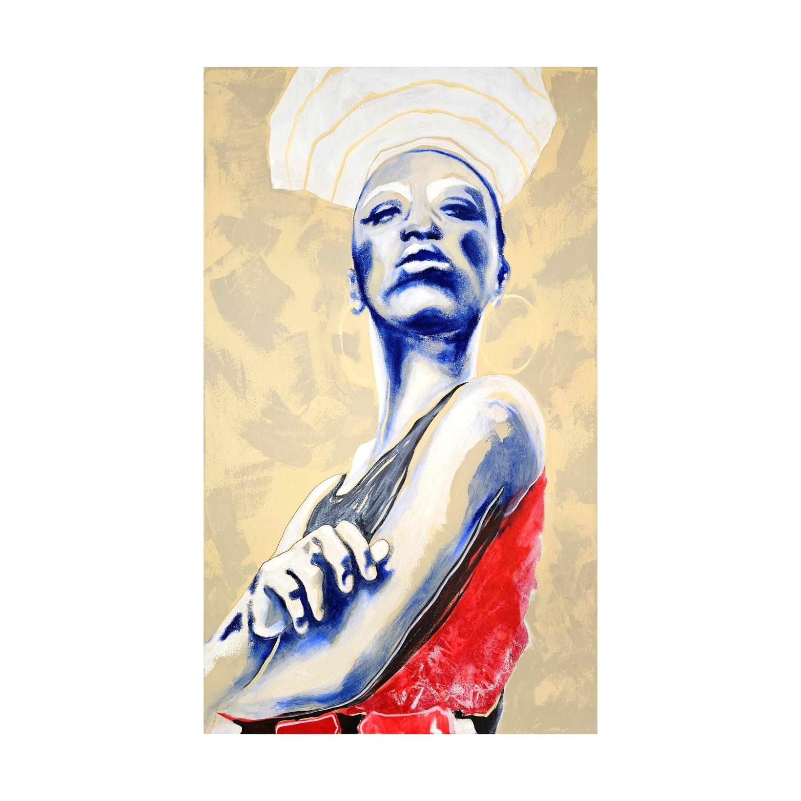 acrylic and mixed media on canvas framed in flooded gum (framed)