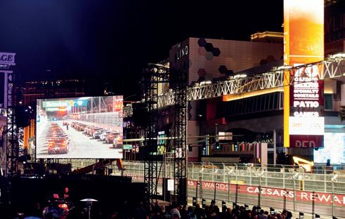 Formula 1 racing teams gather to celebrate such an immense sports event in the USA. The flashing and colorful lights were the background of this spectacle, an avalanche of crowds circling the Vegas Trip, visiting different grandstands, all sponsored by the beloved American brands we so much like to hear on our radio and television sets. Gambling, casino excitement, and the roaring sound of speed filled my ears, something I had never experienced before. It was immense and wonderful and filled our hearts with joy and wonder. ➤