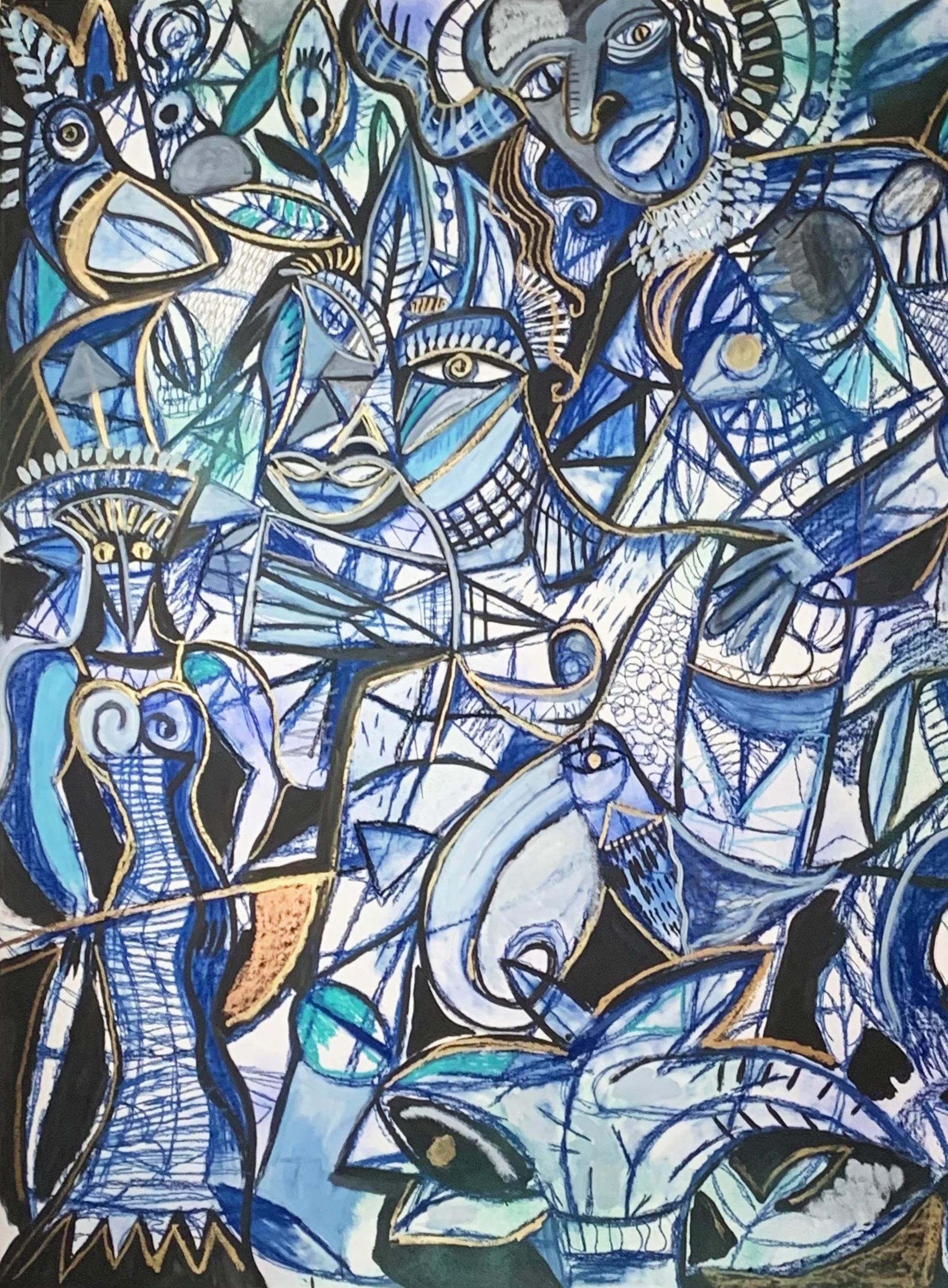 Le faune en Prométhée, 2022 Technique mixte sur papier 100 x 70 cm