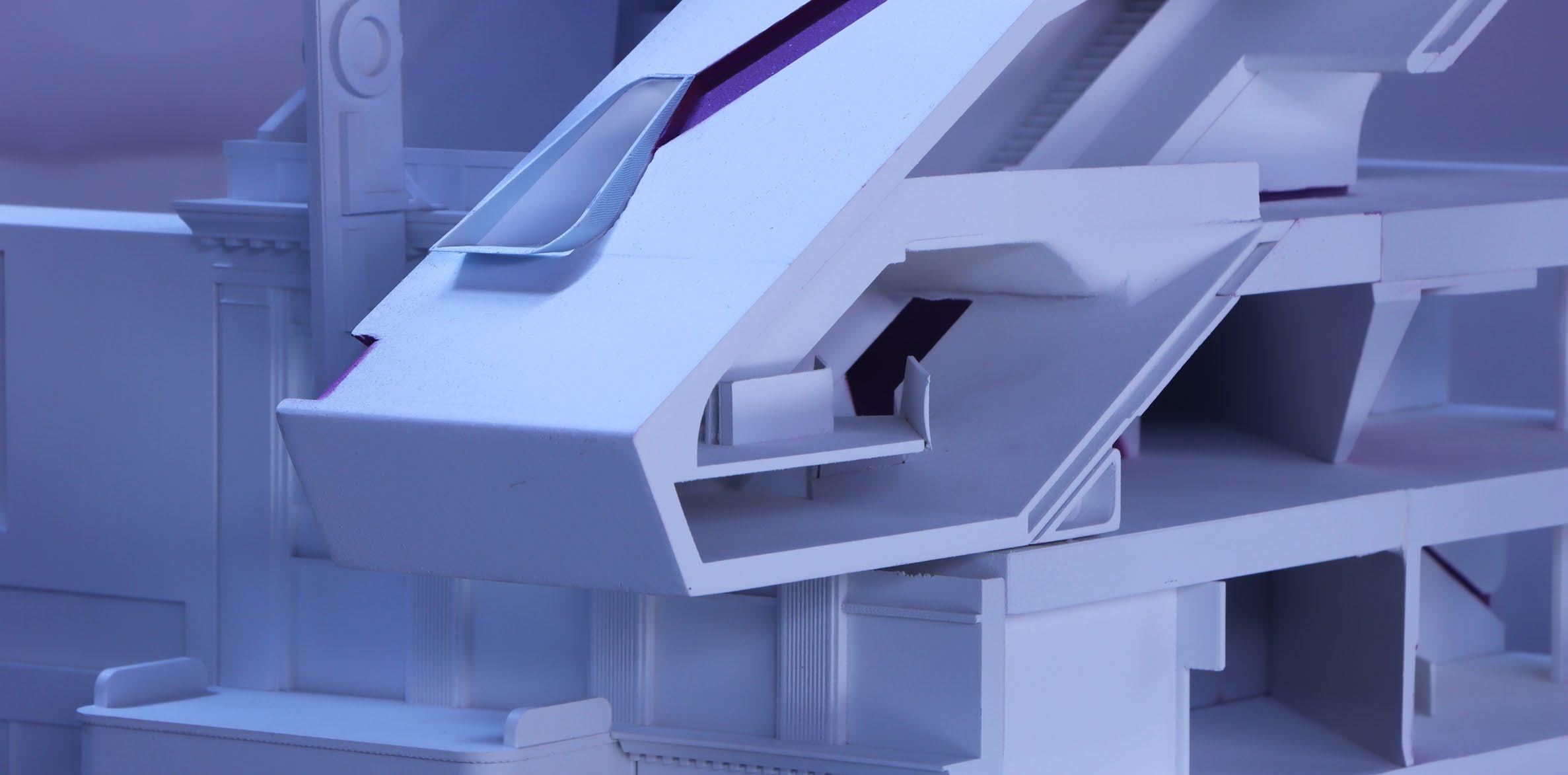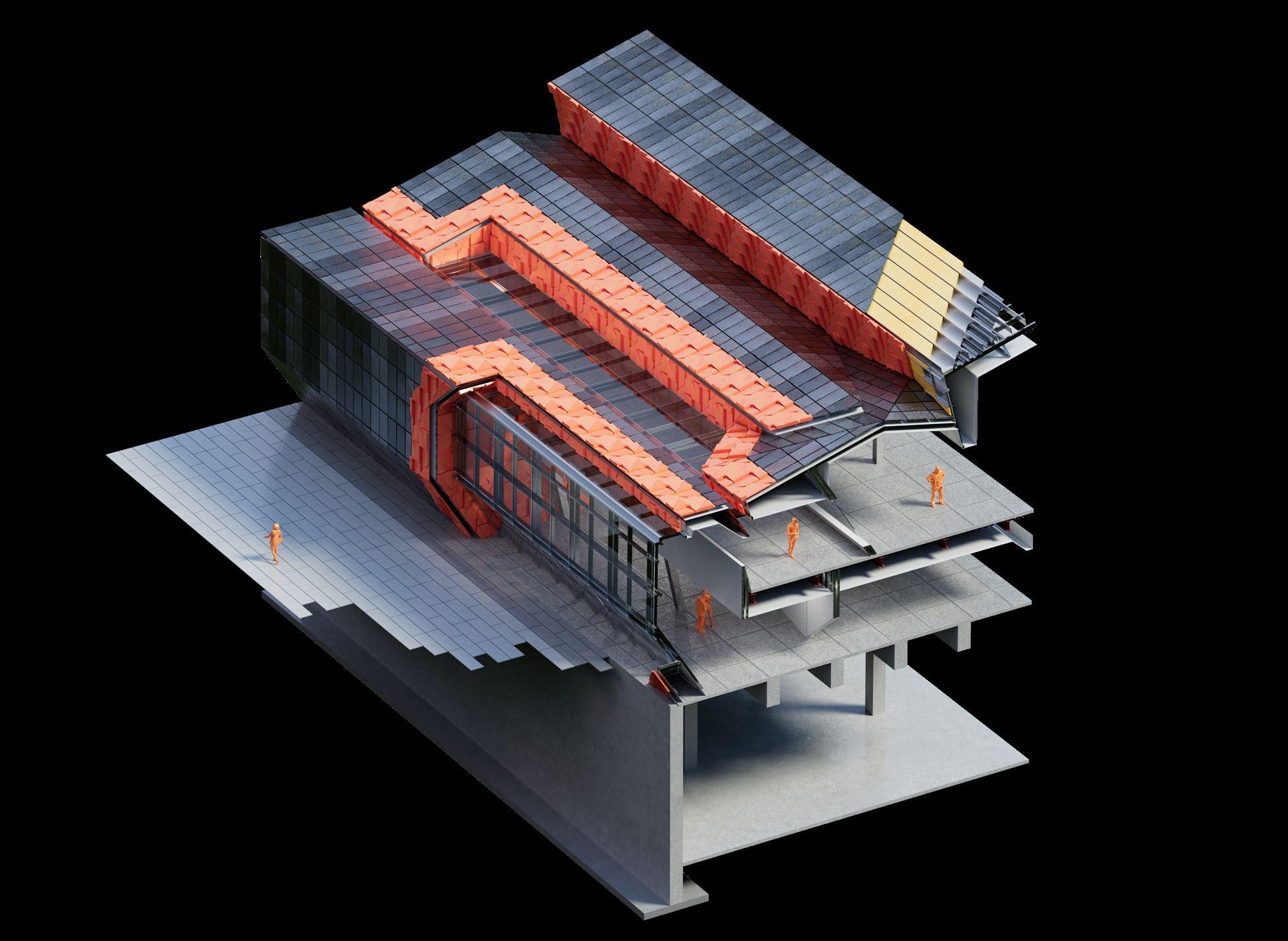 Shapeshifter seeks to disrupt the natural flow of space that is currently present in the existing MassMoca building. Breaking away from the regularity that is present both in the circulation and the formal organization. Through processes which include slipping, extruding, and rotating the intervention sets out to introduce spaces which are intersecting, overlapping and projecting onto one another. Although most of these spaces are born from the same, or a similar, profile this process allows for a multitude of spaces to be internally developed. If there was one way to describe this project, it would best be described as an aggregation of extrusions which are internally shifting to create a museum that is no longer static.