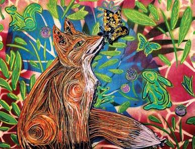 “When I saw Zora’s enchanting drawing of a fox with a butterfly perched on its nose, I thought she had captured a lovely moment in nature. I could only imagine stumbling upon this scene while out for a hike, and I felt inspired. This piece was created using the paper quilling and paper on edge methods, which is suited for creating wildlife. This piece not only reflects the joy of creation but also serves as a reminder of the simple wonders one might encounter outdoors.”