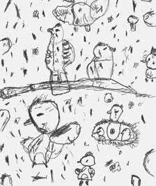 “Caroline’s drawing looks like a story of unity and friendship with the creatures floating somewhere. I loved the upward flow of the characters and wanted to be a part of that adventure into the unknown with best friends.”