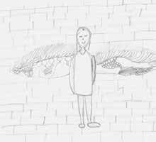 “The ability to fly is a powerful metaphor for pushing our boundaries, reaching beyond ourselves, and freedom. With the illustration of a winged girl casually floating away from a solid wall, that appealing dream of flight seems to have inspired my student artist, and in turn inspired me.”