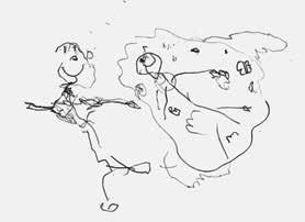 “I love the light hearted approach and sense of movement. The artist was not afraid to fill the entire page with their vision and it seems like a very happy scene!”