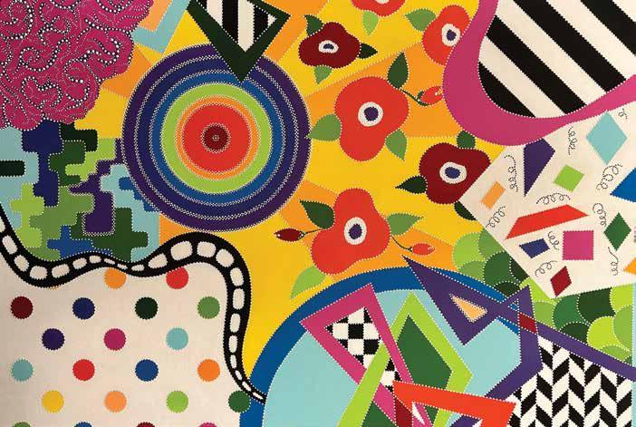 BLAKE SNYDER EAMES is a professional artist who has exhibited her work in multiple venues for more than 25 years. Her paintings, design, murals and furniture pieces can be found in homes, businesses and collections across the country and beyond. Her style is pop art infused and art deco inspired, resulting in vibrant patterns that inspire the senses and soothe the mind’s desire for structure. Well known for her bold, geometric paintings, Eames is also the owner of Blake Eames Design, an independent enterprise specializing in commercial and residential interior design. Eames Art & Design Studio is located in downtown Lexington.