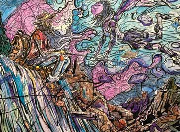 CHERYLE WALTON is a Kentucky artist who calls Lexington home. Her technique was born 20 years ago, inspired by coal country. A base image is created in acrylic and then a layer of black watercolor is applied over the entire image. Afterwards, she removes the black watercolor to bring out the image while creating detail and texture.