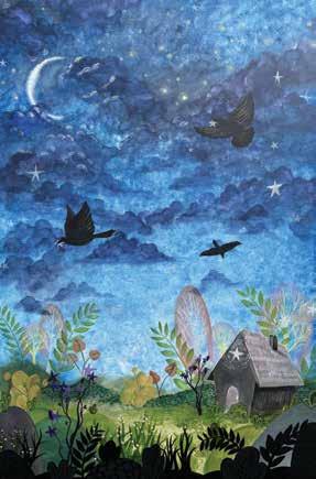 “I’ve always loved the stars and images depicting homes. When I saw this drawing, I immediately knew I could create something illustrative and dreamy. I love the proportions and style of Wilder’s stars. It was easy to visualize how to feature Wilder’s drawing into the work while building a world around it.”