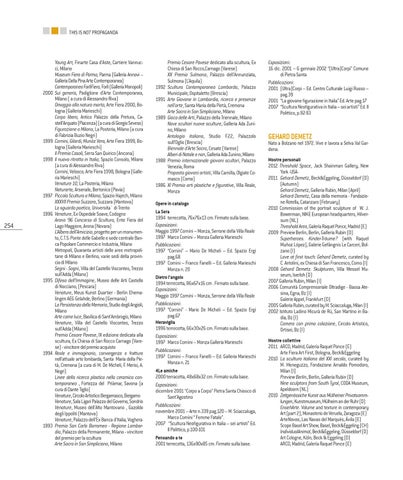 Esposizioni: 16 dic. 2001 – 6 gennaio 2002 “(Ultra)Corpi” Comune di Pietra Santa Pubblicazioni: 2001 (Ultra)Corpi – Ed. Centro Culturale Luigi Russo – pag.39 2001 “La giovane figurazione in Italia” Ed. Arte pag.17 2007 “Scultura Neofigurativa in Italia – sei artisti” Ed. Il Polittico, p.92-93