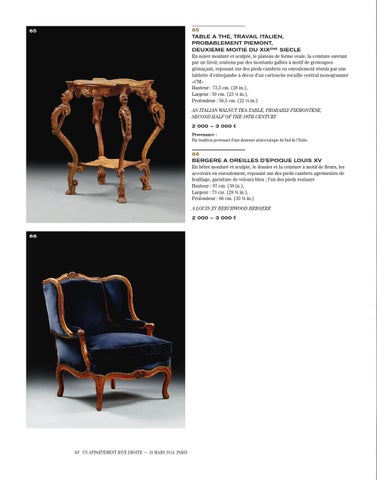 En hêtre mouluré et sculpté, le dossier et la ceinture à motif de fleurs, les accotoirs en enroulement, reposant sur des pieds cambrés agrémentés de feuillage, garniture de velours bleu ; l’un des pieds restauré Hauteur : 97 cm. (38 in.), Largeur : 73 cm. (28 ¾ in.), Profondeur : 86 cm. (33 ¾ in.) A LOUIS XV BEECHWOOD BERGERE 2 000 – 3 000 € 66