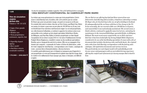 Un des 61 exemplaires conduite à gauche / One of 61 left-hand-drive examples 1962 BENTLEY CONTINENTAL S2 CABRIOLET PARK WARD