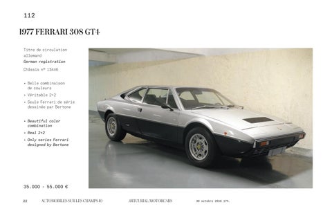 1977 FERRARI 308 GT4 Titre de circulation allemand German registration Châssis n° 13446 • Belle combinaison de couleurs • Véritable 2+2 eule Ferrari de série • S dessinée par Bertone • Beautiful color combination • Real 2+2 nly series Ferrari • O designed by Bertone