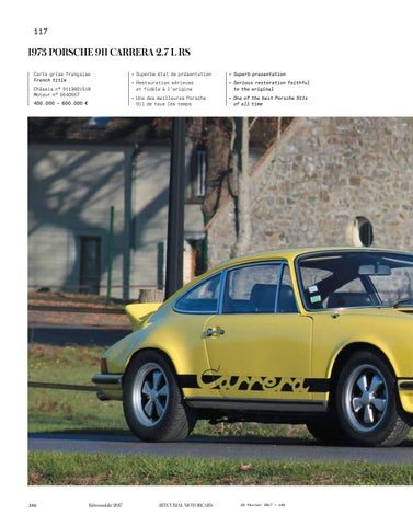 1973 PORSCHE 911 CARRERA 2.7 L RS Carte grise française French title Châssis n° 9113601518 Moteur n° 6640667