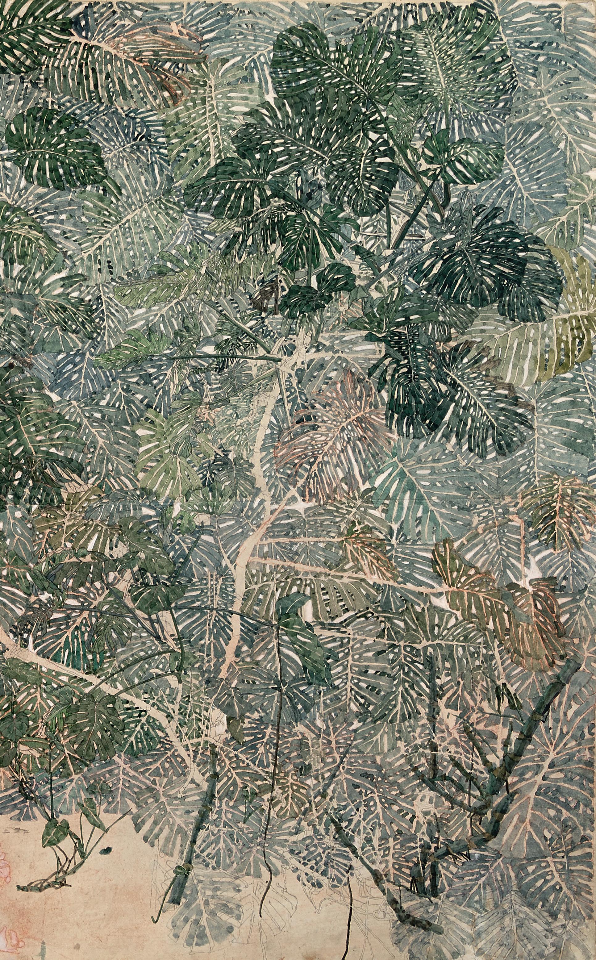 view of the ineffable beauty of nature. With that in mind, the painting’s contour is made using much less distinct dashes that define the boundary between the artist’s imagination and the landscape portrayed.