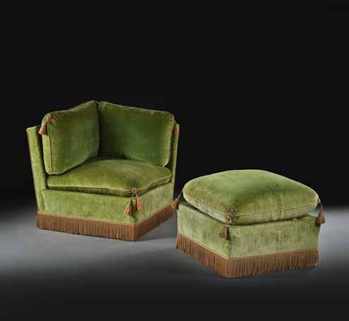 En noyer mouluré et sculpté, la ceinture ornée au centre d’une coquille flanquée de rinceaux de feuillage, les pieds cambrés, garniture de velours gaufré à décor floral ; renforts en ceinture sur l’une des deux H. : 107 cm (42 in.)