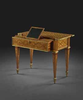 pour servir dans le petit cabinet de retraite de la reine Marie Leczinska à Marly (9). Cette étiquette nous informe que le marchand proposait à sa clientèle des bureaux, des écritoires, des tables pour écrire et des tables en pupitre, mais aussi des commodes de toute façon, etc., dont les esquisses à l’encre offrent un aperçu suggestif. Bertin Léger vivait encore en octobre 1739 (10) .