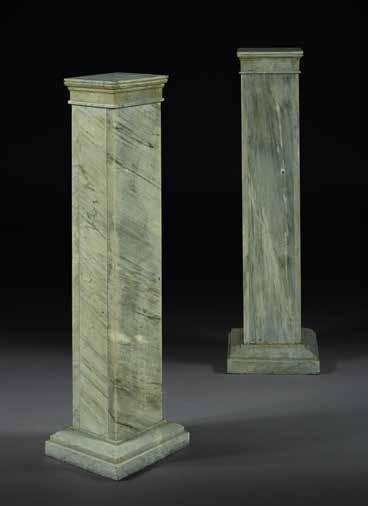 Chacun reposant sur un socle en marbre de forme évasée et une gaine en placage d’onyx