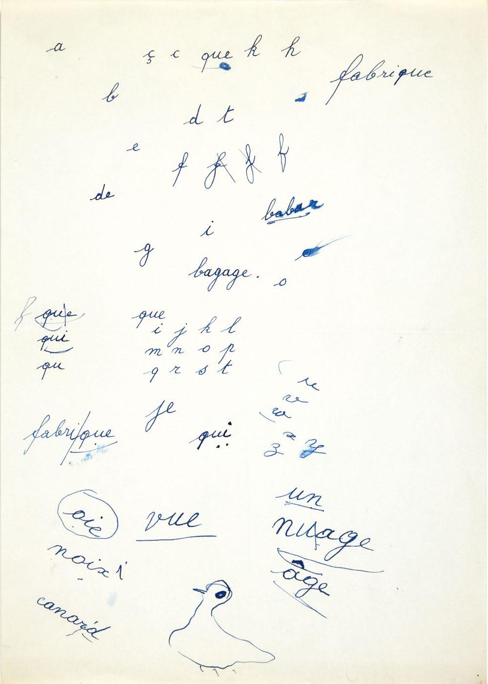 Dans cette vente, il y aura beaucoup d’œuvres et de documents liés à mon père. J’ai acquis quelques un de ses manuscrits. Mais j’ai envie également de présenter des œuvres plus intimes, comme une lettre à entête du « Département des Aigles » sur laquelle j’ai fait des dessins que mon père a « amélioré » ou ce petit livre de Robert Filliou (rencontré en 1972 à Düsseldorf) dans lequel nous avons dessiné et écrit mon père et moi.