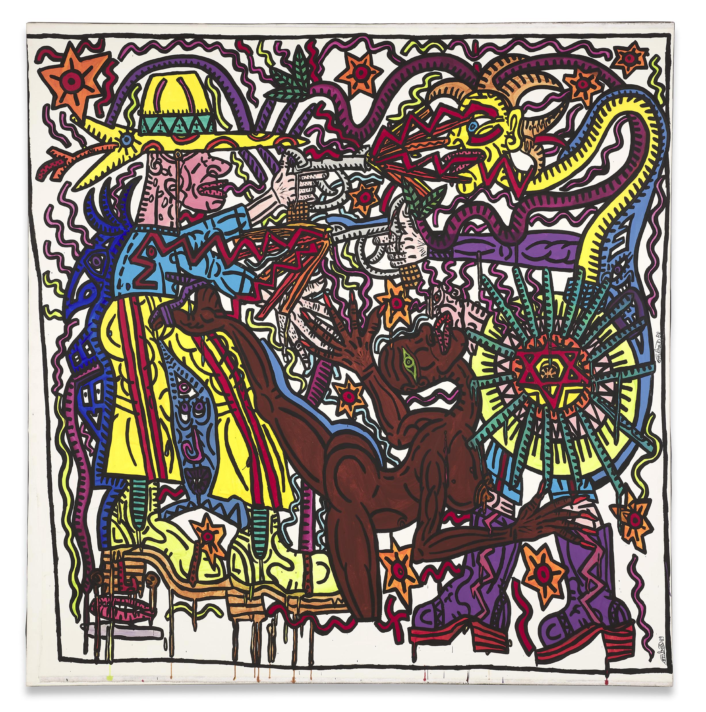 lot n°142, Robert Combas, Tir de cowboy sur serpentin jaune, 1988-89 (détail) p.164