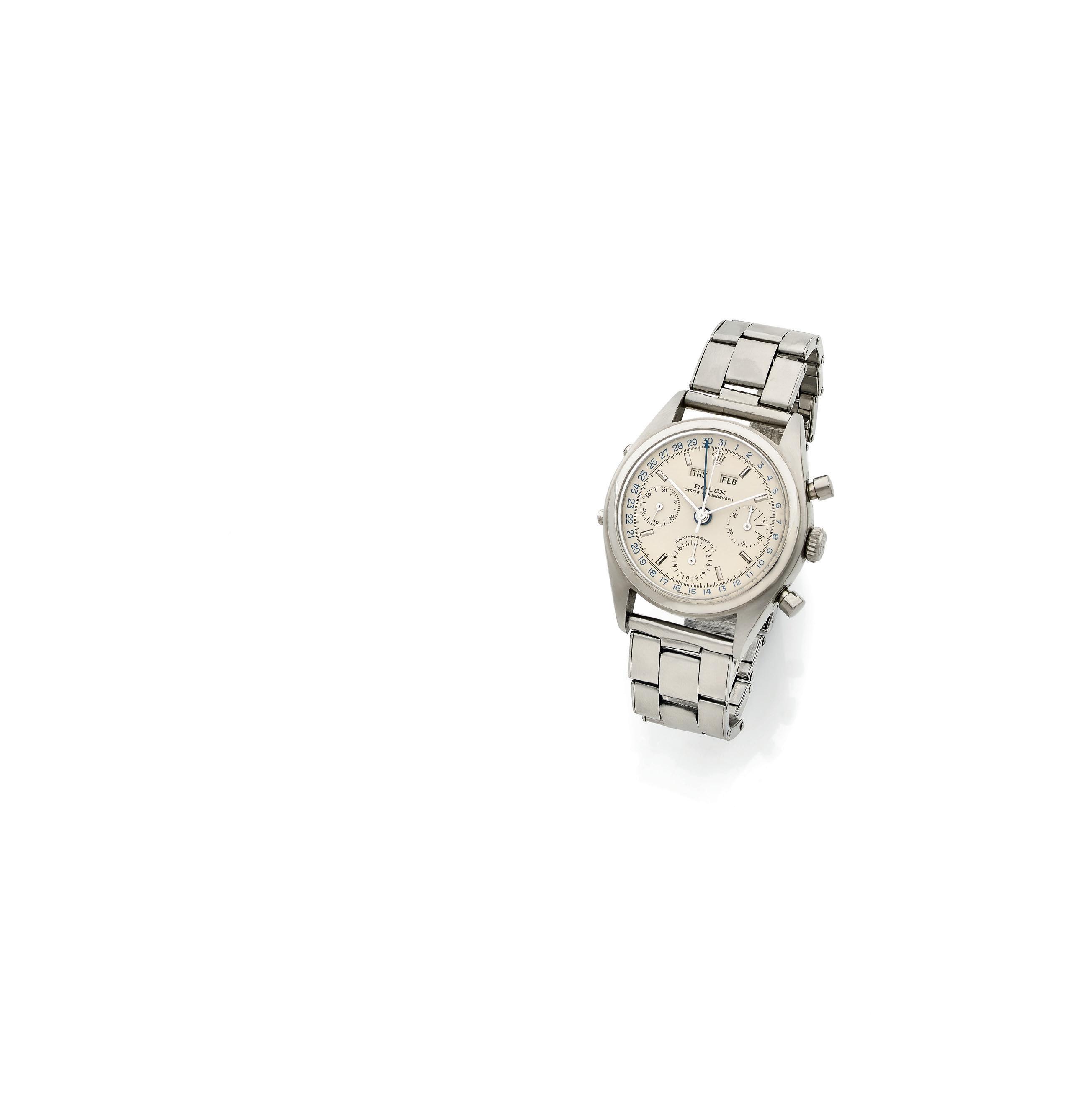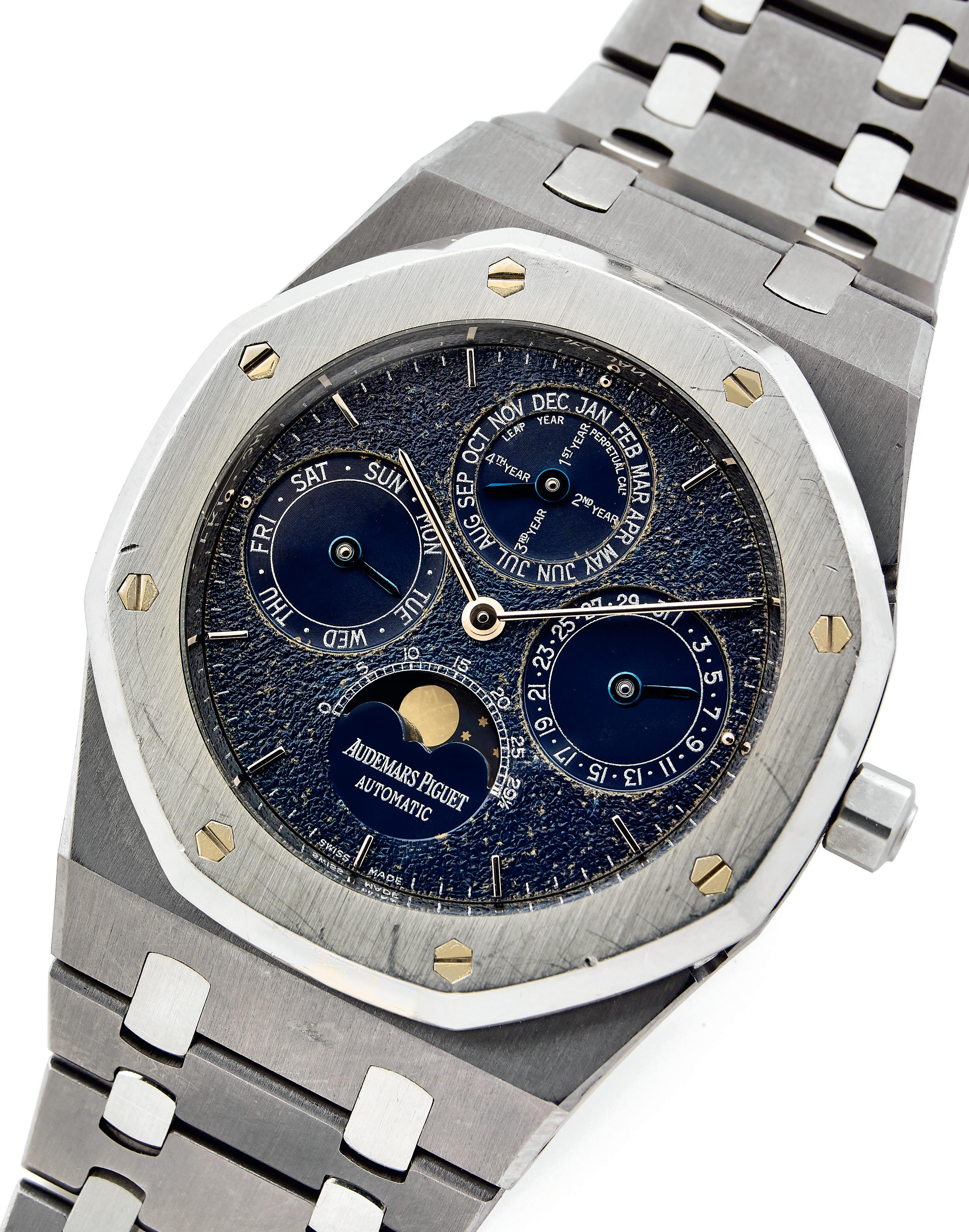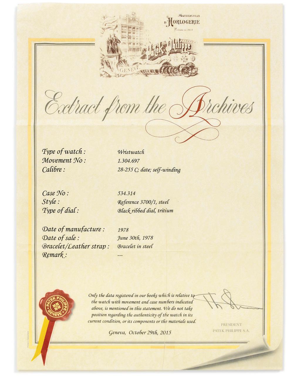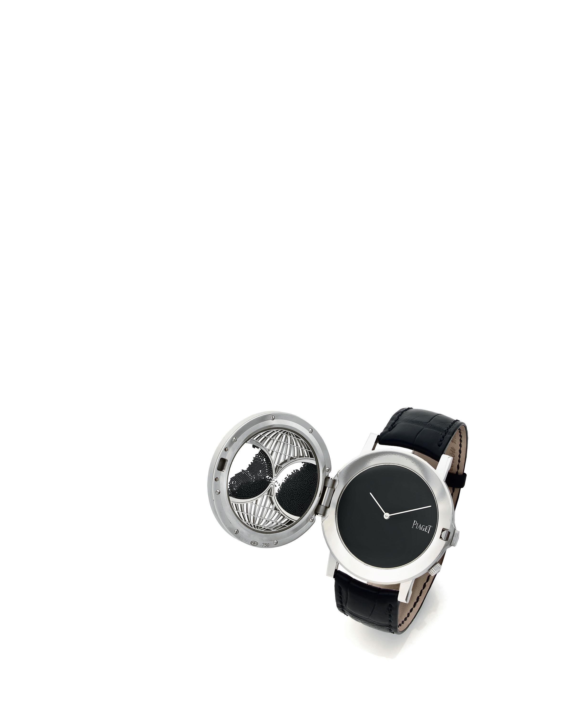 Nous avertissons nos potentiels acquéreurs que les bracelets réalisés en derme d’espèces protégées sont présentés mais non vendus avec les montres. Artcurial SAM se réserve le droit d’enlever ces bracelets en cas d’importation.