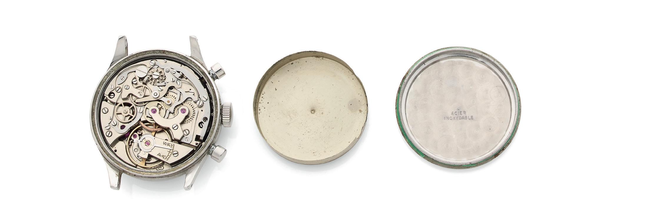 Artcurial SAM se réserve la possibilité de modifier la proportion des objets pour des questions de mise en page dans les catalogues. Les montres et pendules sont vendues en l’état. Aucune garantie n’est faite sur l’état de marche des montres et pendules. La plupart des montres ont été ouvertes pour identifier le type et la qualité du mouvement, y compris les montres résistantes à l’eau, il est donc conseillé à l’acheteur de consulter un horloger pour revoir l’étanchéité de la montre. Le changement des bracelets, l’étanchéité, les restaurations, les révisions et les réglages sont à la charge de l’acquéreur. Tout devis de restauration provenant de quelques horlogers que ce soit ne pourra être pris en charge par Artcurial SAM.