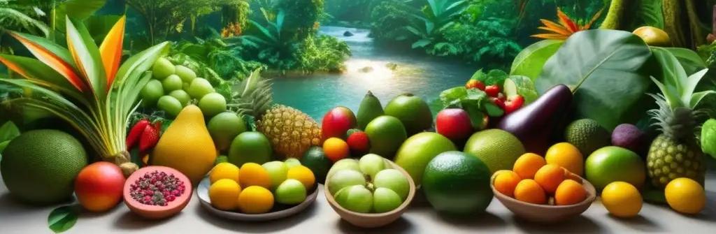 Entre los alimentos originarios de la región se encuentran el maíz, la quinoa, el amaranto, las lentejas, nueces, plátano, aguacate, camote, guayaba, mango, piña, cacao, frijol, vainilla, pescado, insectos comestibles, yuca, cilantro, perejil, entre muchos otros.