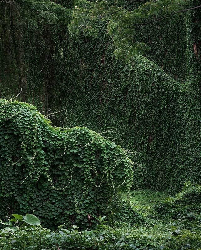 While looking for locations for this series, I found a kudzu (Pueraria lobata) , a perennial vine native to the East that was introduced in the US in 1876 and advertised by the government as a “wonderful plant” to feed livestock. Today, it covers over a million hectares.