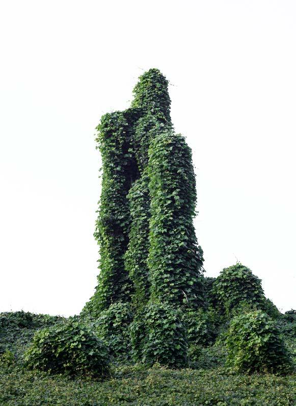 En la serie El poder del l í mite – Kudzu muestras la realidad dual de la naturaleza. La apropiación de una especie a través de otra; el mundo parasitario. ¿Cómo llegaste a esta investigación? Mi serie anterior, Edén, comenzó con la búsqueda de bolsones de flora nativa que permanecen vírgenes dentro de cultivos intensivos, cercanos a pueblos y ciudades. Mi idea no era mostrar ese diálogo, sino plasmar un universo donde querer quedarse, donde encontrar un origen, donde uno puede tener un diálogo con uno mismo y con algo superior. Fue buscando escenarios para esta serie que me crucé con el kudzu ( Pueraria lobata ), una enredadera perenne, originaria de Oriente, que se introdujo en los Estados Unidos en 1876 y fue promovida por el gobierno como una “planta maravillosa” para alimentar al ganado. Hoy cubre más de un millón de hectáreas. Cuando el Kudzu invade, cubre otras especies hasta ahogarlas. Es capaz de transformar paisajes enteros, es un ejemplo de la dualidad de la naturaleza. La belleza del Kudzu es, paradójicamente, su peor enemiga: representa un recordatorio vívido de la importancia de comprender y controlar las consecuencias del hombre en el ecosistema. Viajé al sudeste de Estados Unidos para fotografiar ese paisaje a la vez maravilloso y macabro.