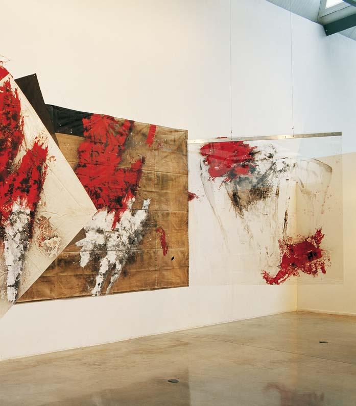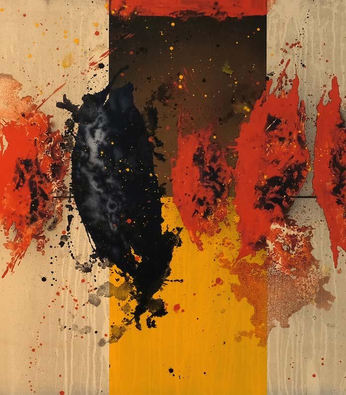 “Somos animales políticos, quizás más conscientes desde la Revolución Industrial. La abstracción, nunca ha sido el mejor vehículo para expresar ideas concretas”, señala mientras reflexiona sobre la guerra de Ucrania en una obra de gran formato. Pintura, capas de pintura de color rojo intenso, “tiene tanta intensidad y dolor que consigue empatar con la atmósfera grave y deprimente del Guernica”, explica.