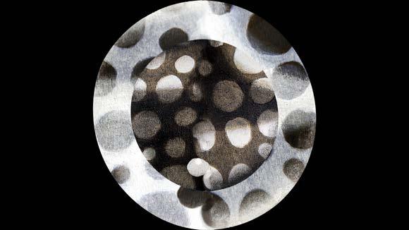 In Atmósferas y entropía (Atmospheres and Entropy, 2011 and 2022) she intermittently starts a dissolution process of the allure of figuration on a micro scale. On the micro, diamonic figurations re-emerge. These atmosphere-driven illustrations focus visuals on a sort of incomprehensible energetic excess which could perhaps simply be a way of representing something that has not been depicted until now: dark matter. This series brings us closer to an artistic vision of a trans-material aspect of reality, as abstraction is required to represent something that cannot be seen, thus piercing the materiality of existence.