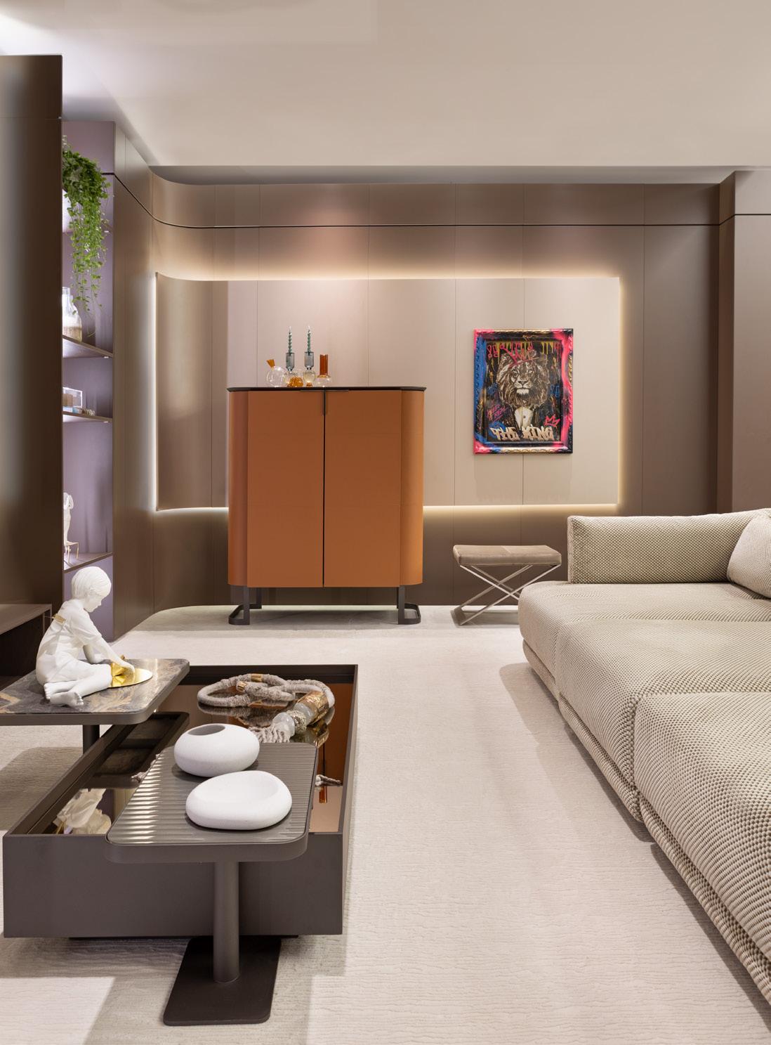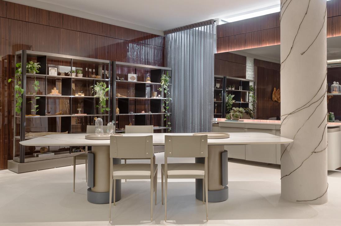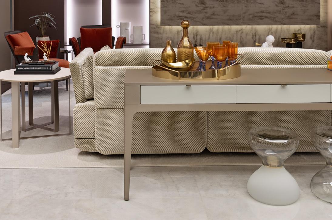 �� iarin , mesa de jantar eclipse , caixa bar pietra , poltrona �� entha , mesa lateral n usa , mesa lateral h alston , módulo opus , chaise longue opus , mesa lateral �� aivota , mesa componível paloh , mesa de centro h alston e mesa de centro �� inza . Na página ao lado, módulo opus , chaise longue opus , mesa lateral �� aivota , mesa componível paloh e mesa de centro �� inza.