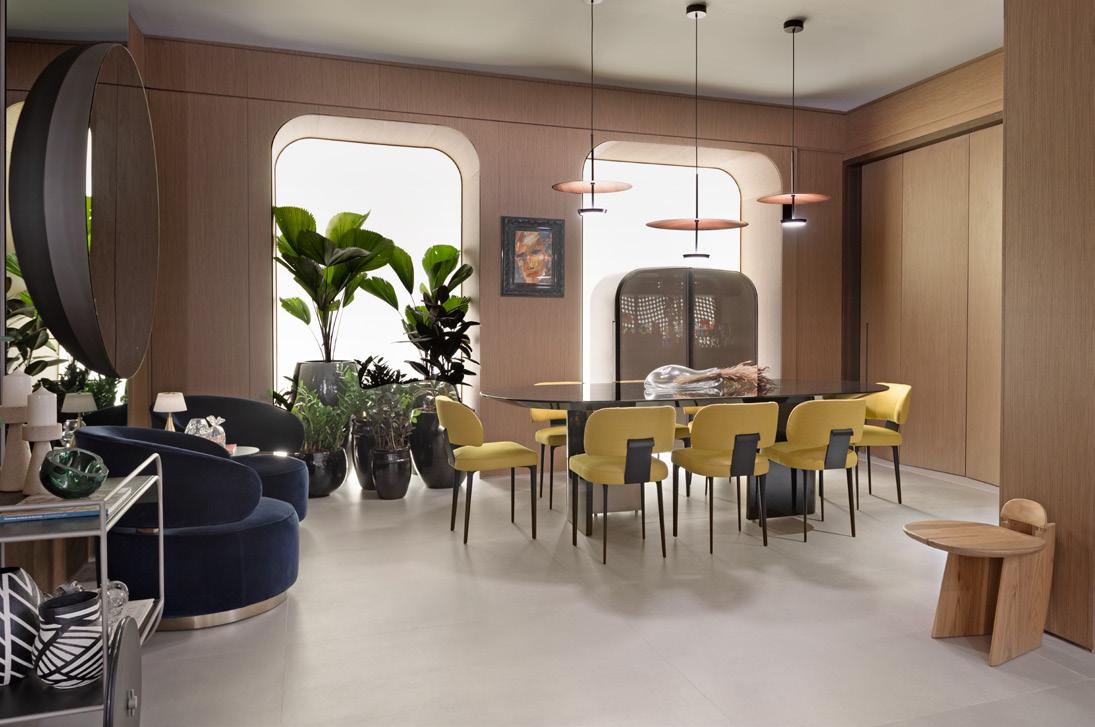 A dupla de arquitetas Malu Lisboa e Nathasha David traz à Mostra Manaus um espaço que expressa com originalidade e elegância a essência da Amazônia urbana. Malu e Nathasha, com especializações em Design de Luxo, Retail Design e Visual Merchandising, conseguem combinar com harmonia elementos ancestrais amazônicos e a sofisticação contemporânea dos ambientes urbanos. Painéis de madeira, texturas variadas e assentos em veludo azul dialogam diretamente com a força e a beleza dos rios amazônicos – a mesa de jantar, peça central do mobiliário Artefacto no ambiente, reforça o conceito de acolhimento e sofisticação. A iluminação quente cuidadosamente trabalhada e os materiais sob curadoria atenta criam um ambiente intimista, idealizado para proporcionar encontros especiais e experiências memoráveis.