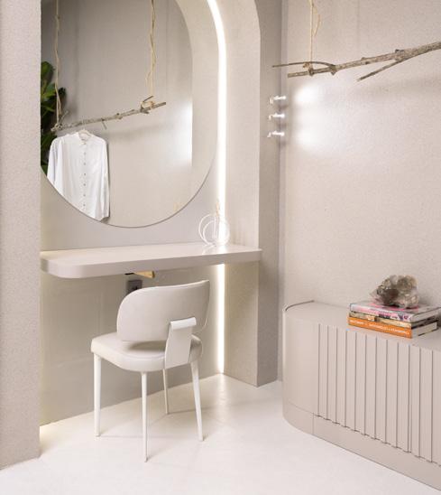 Com uma trajetória consolidada ao longo de 18 anos e mais de 400 projetos realizados, Lêdiane Medeiros Barbosa é reconhecida pela habilidade em aliar funcionalidade técnica e sensibilidade estética. Sua formação acadêmica inclui pós-graduação em Iluminação, além de um MBA em Gestão de Obras e Projetos – na Mostra Manaus, a arquiteta apresenta um espaço inspirado pela cor Mocha Mousse, tonalidade quente e acolhedora eleita pela Pantone como cor do ano. O ambiente explora diversas texturas e detalhes cuidadosamente selecionados no mobiliário Artefacto, criando uma experiência visual e sensorial que convida à permanência e ao relaxamento e refletindo o papel fundamental que a arte desempenha em sua vida profissional e pessoal.